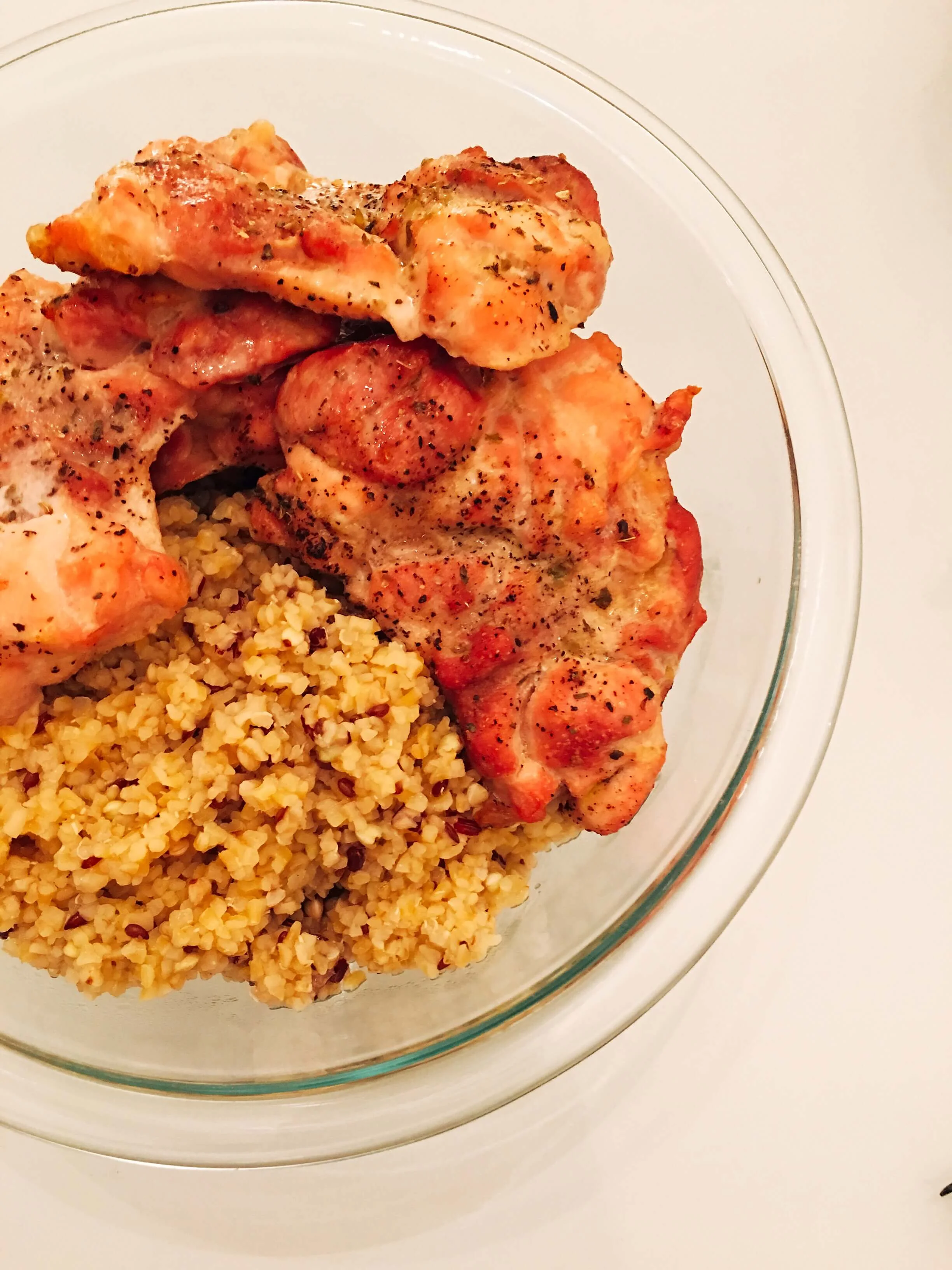 I did some meal prepping on Sunday so my lunches and snacks can easily be thrown together! Here's my cooked chicken and quinoa for my salads.